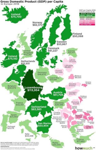 România, putem spune că stă relativ bine, în partea de est a Europei, cu un PIB de 12.189$ / locuitor. Ungaria are 16.016$ / locuitor, dar ambele sunt departe dacă le raportăm la Germania, care are PIB-ul de 48.670$ pe cap de locuitor.
